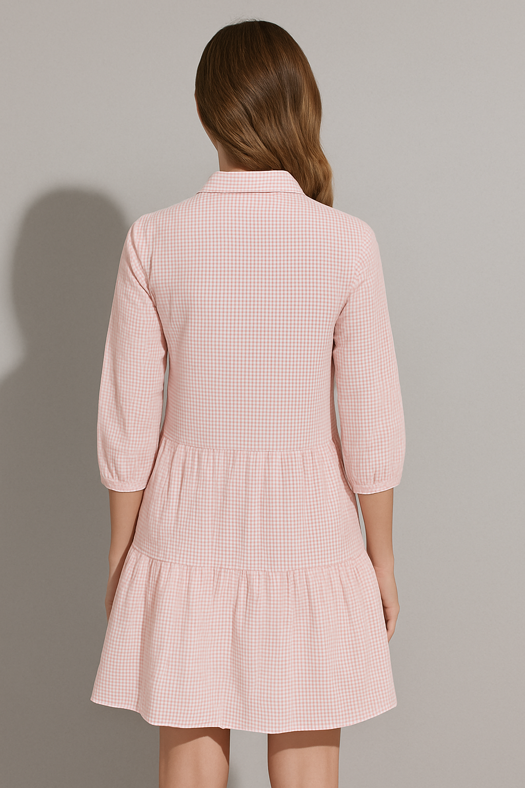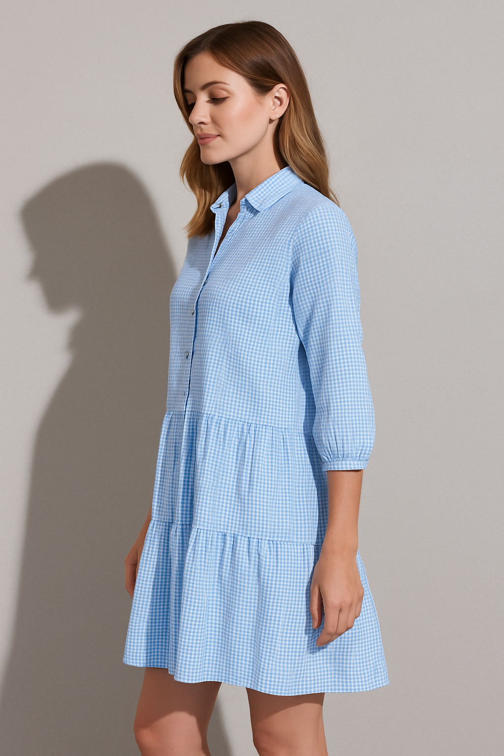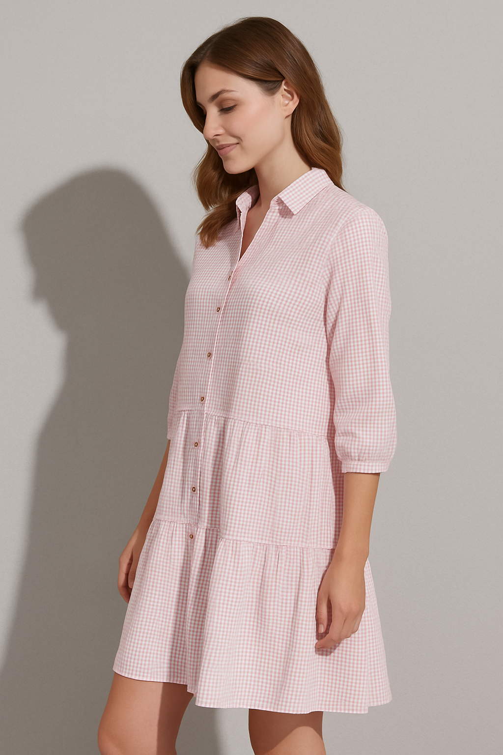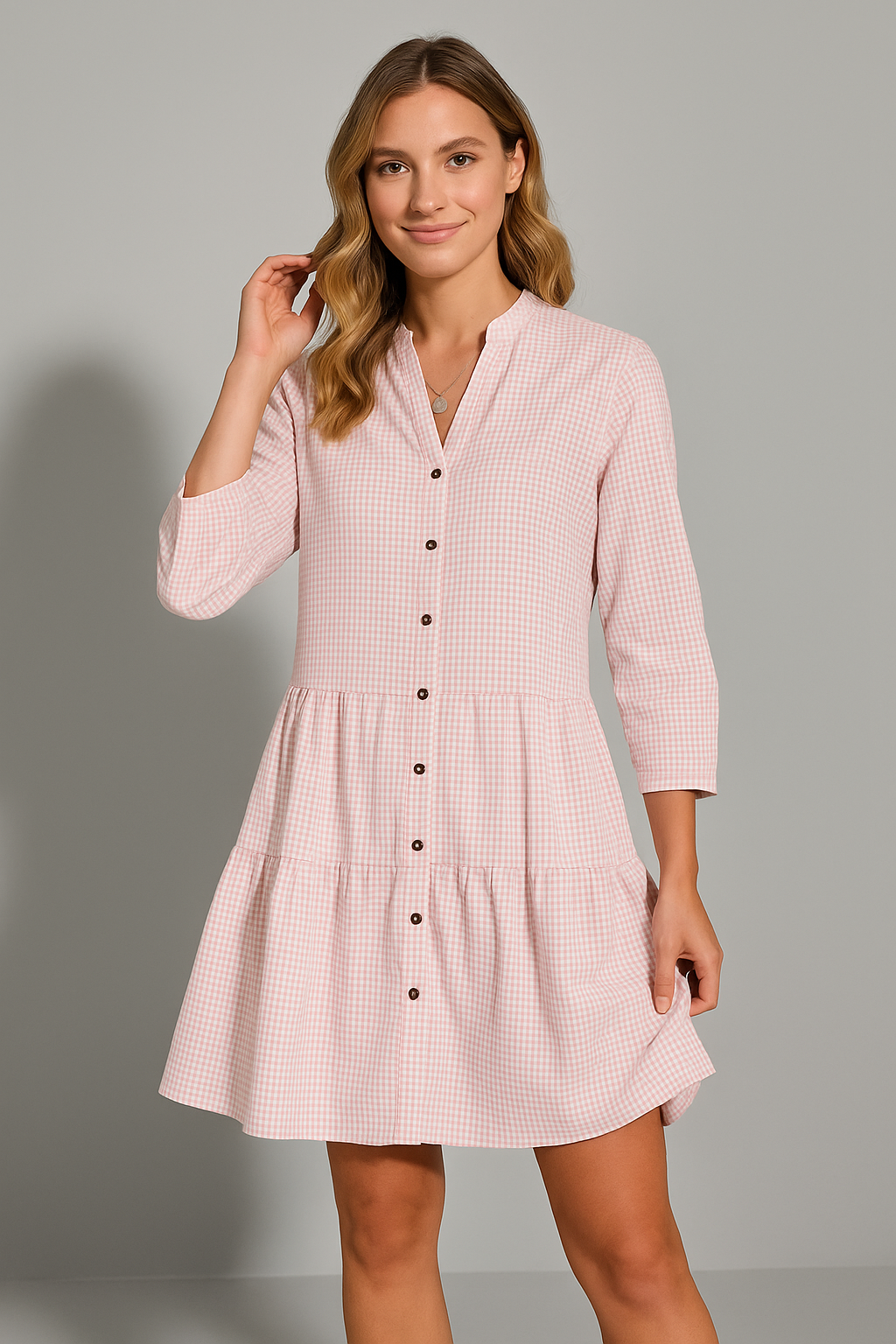 This summer v-neck shirt midi dress blends structure and fluidity for a look that’s both polished and relaxed. The a-line striped pattern adds a subtle statement, while the flattering waistline creates a natural silhouette. Designed for all-day comfort, its breathable fabric and loose fit keep you cool and confident. Whether you're heading to the office or meeting friends for brunch, this dress adapts seamlessly to your day. Pair it with heels or ankle boots for a clean, refined look.